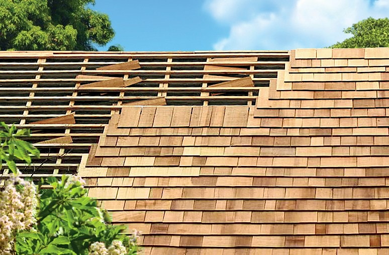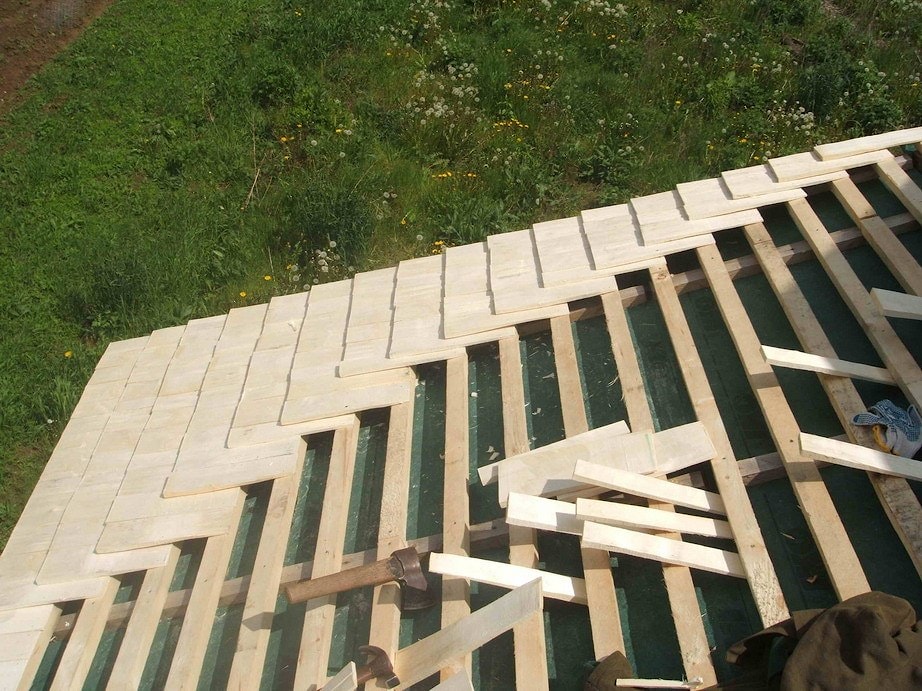 在下雨或潮湿的过程中,树木膨胀,木瓦表面被压实,防止水分进入。中心凹陷表面的结构是最合理的,确保屋顶免受降水的最大保护。